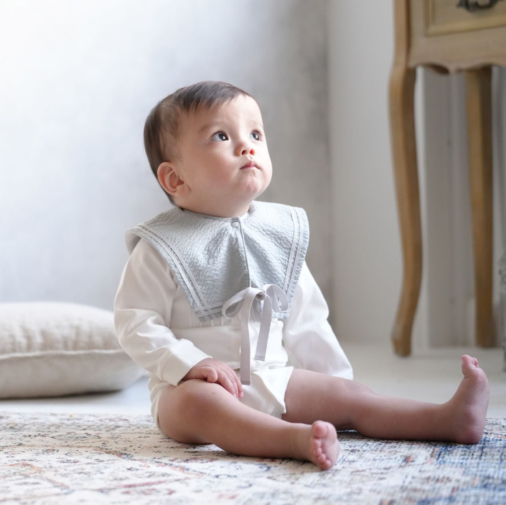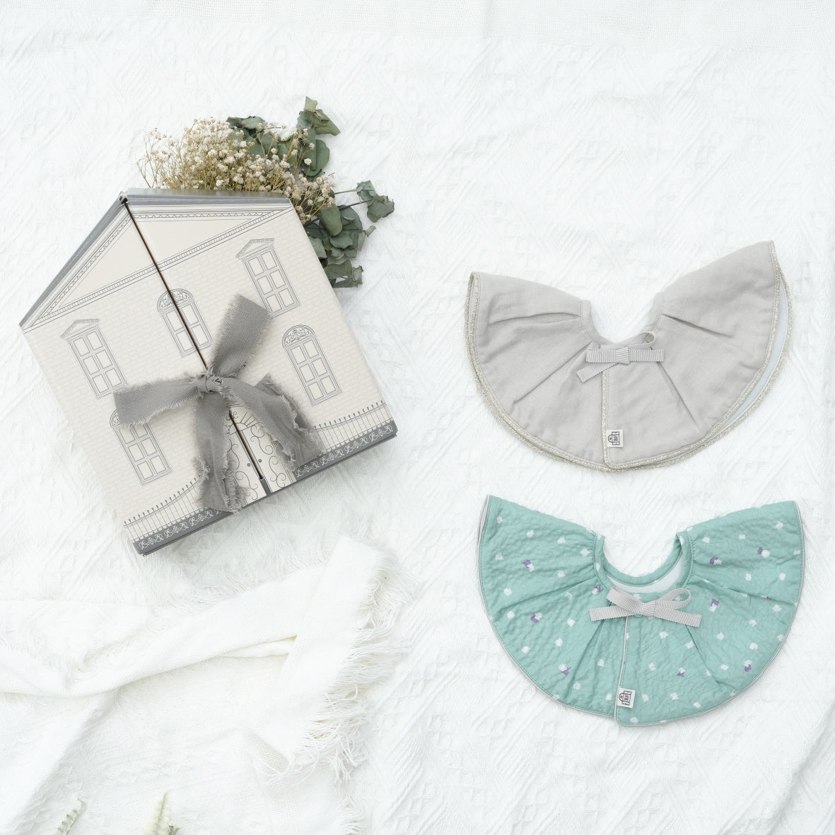 離乳食が始まる時期なので、お出かけ時に映えるようなスタイやお食事エプロンも良いですね。