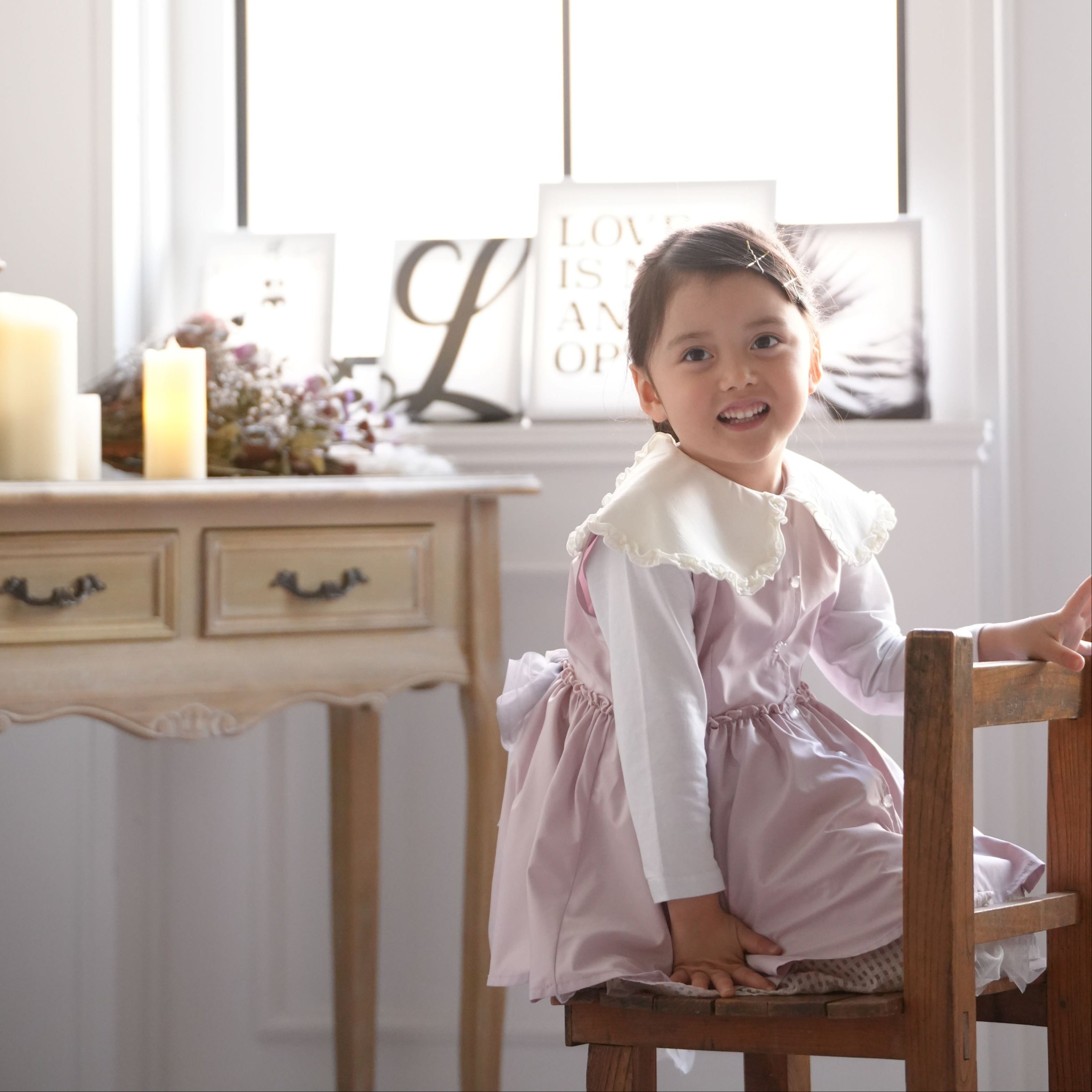 この頃になってくると、成長がやや緩やかになってくるため、あっという間にサイズアウトしにくい時期になります。ジャストサイズよりも大きめサイズをお渡しして長く着ていただけるようなお出かけ着は、ママも嬉しいはず。