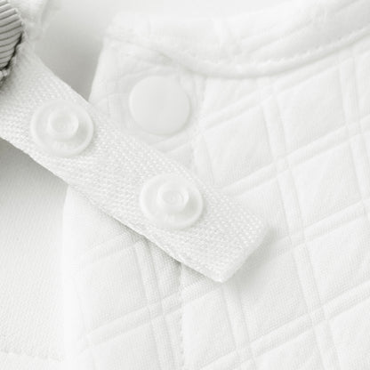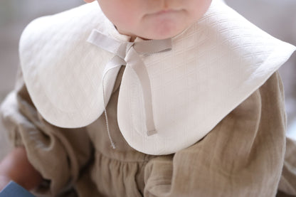 ●素材は、立体感ある上品なキルティング調のジャカード素材を使用しています。ソフトで温かみがあり、軽くて優しい手触りが特徴です。軽い付け心地で赤ちゃんの肩へも負担なく、よだれもしっかりと吸収します。