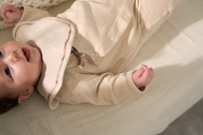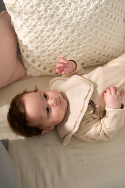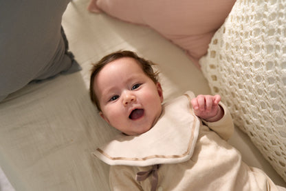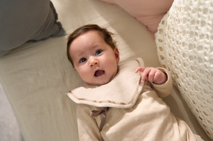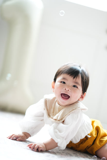 ●素材は、ふわふわととても柔らかな二重ガーゼ素材を使用。赤ちゃんの肌に優しい素材なので、デリケートな赤ちゃんでも安心して使用できます。